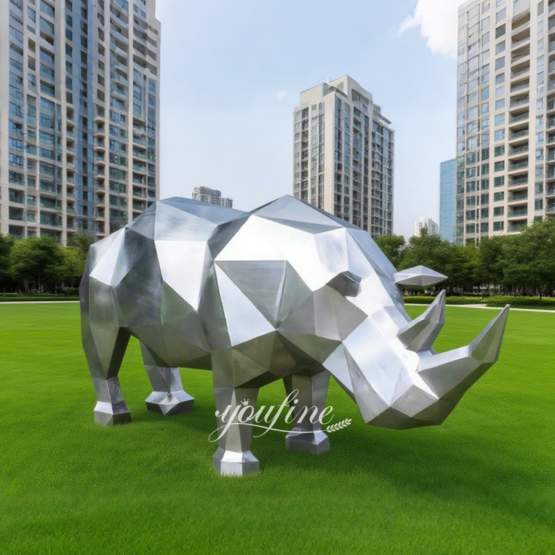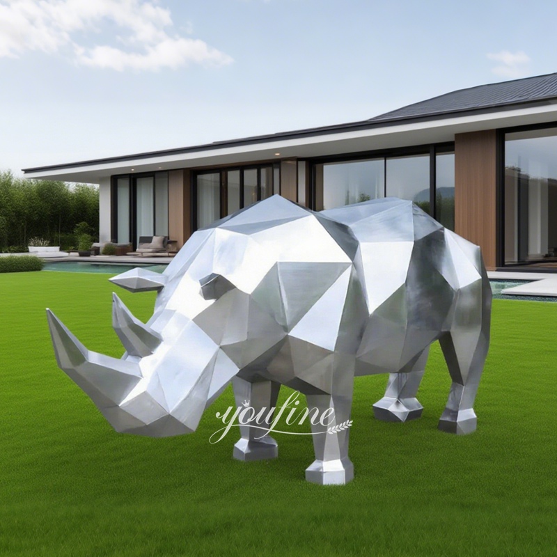 The image of the rhino is often used to symbolize strength and perseverance, and also symbolizes the determination to protect homes and loved ones. Therefore, this stainless steel rhino sculpture is very suitable for outdoor use as a symbol of a guardian and good quality. At the same time, as a representative of rare species, it can also be used to remind people to protect wild animals.