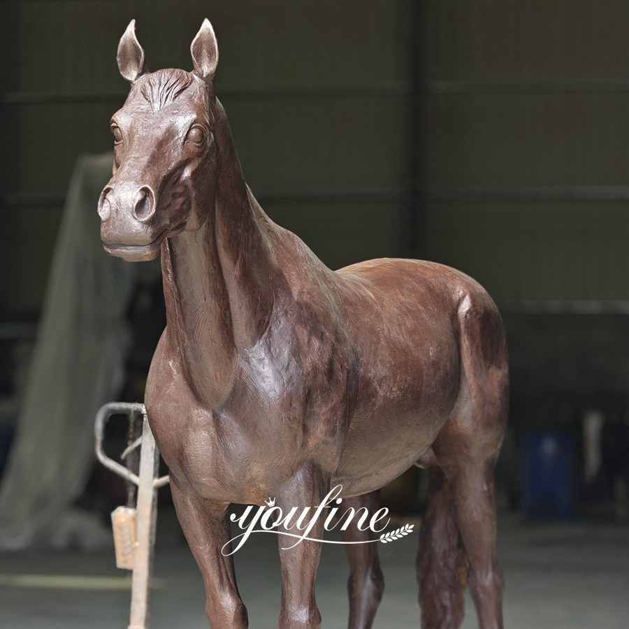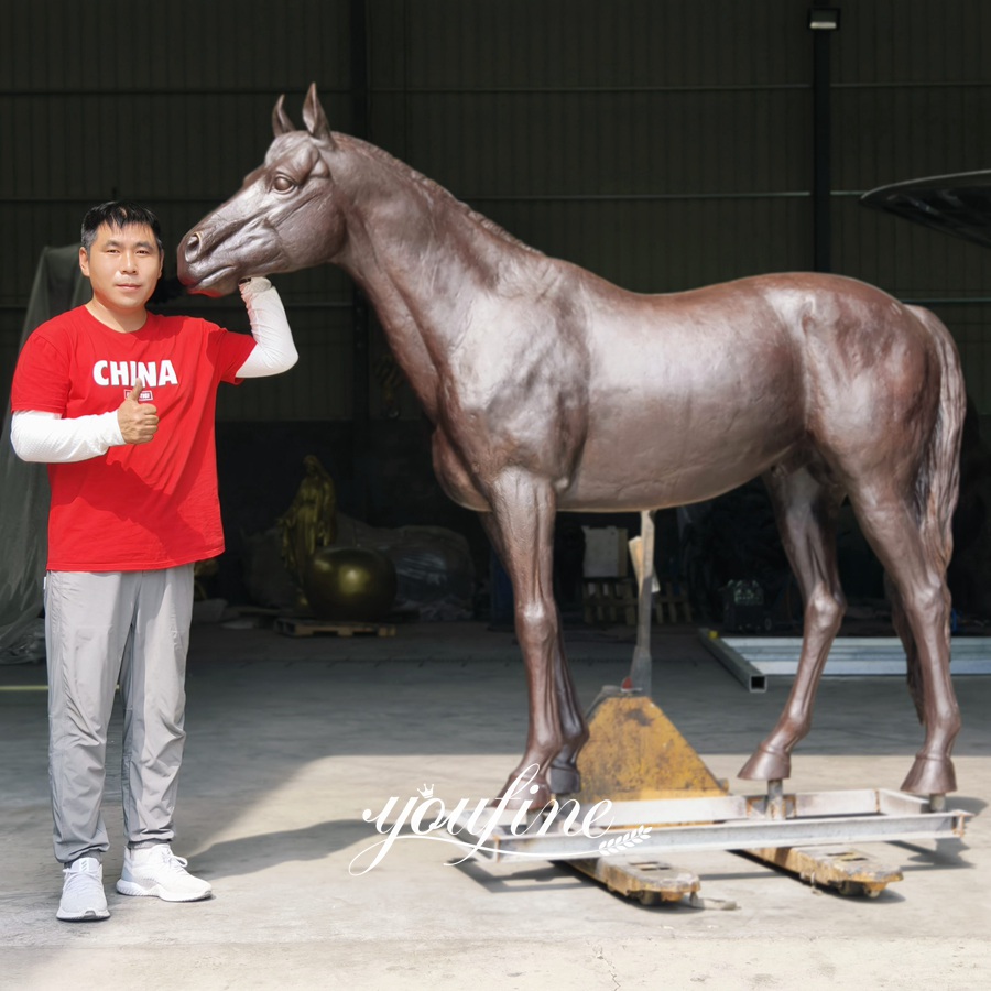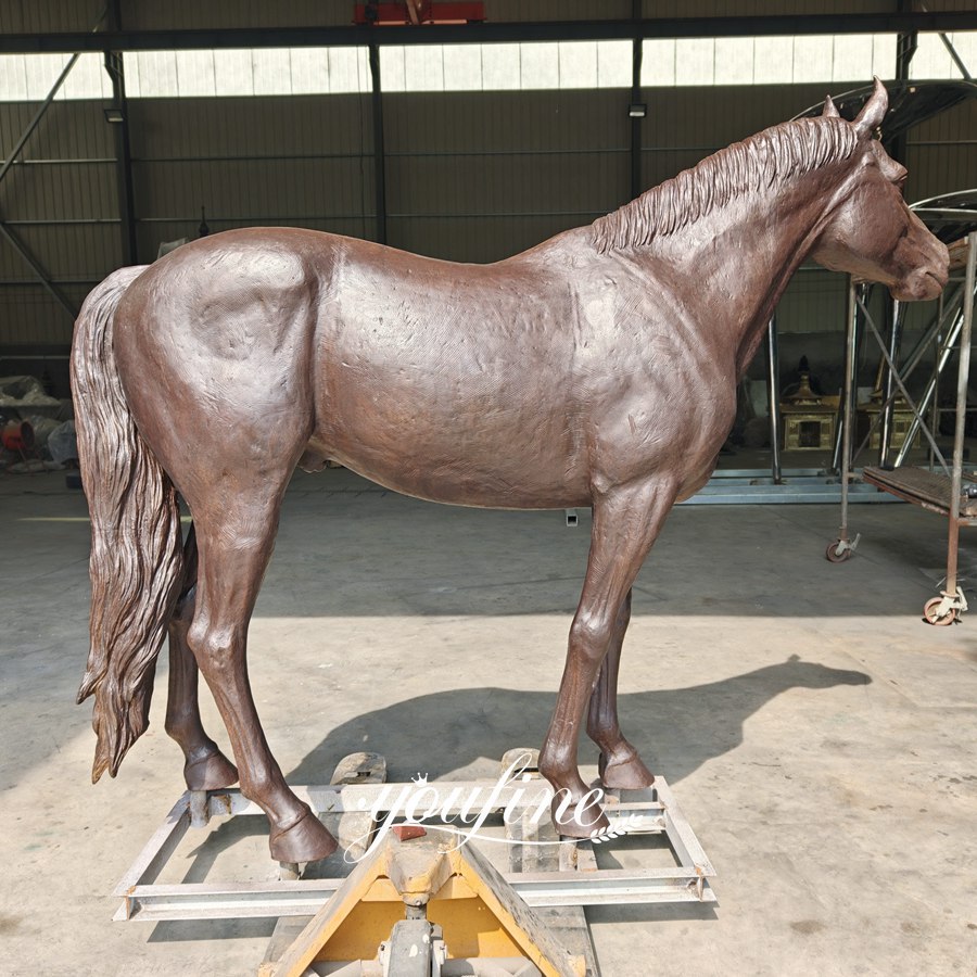 Particularly, after polishing, YouFine artists hand-mix a light brown color to the customer’s needs and chemically color the surface of the standing horse statue, creating a natural, even color that makes the entire horse appear to be revitalized.