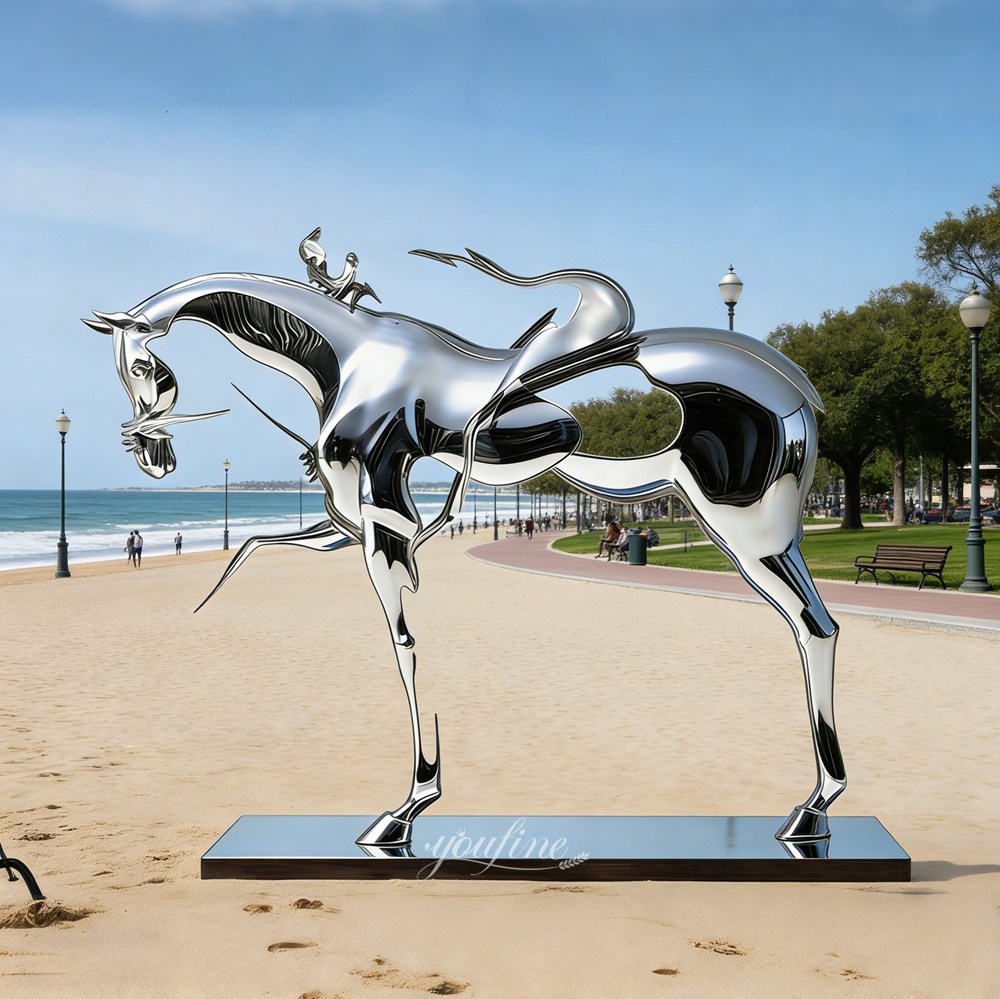 The abstract horse sculpture serves as the perfect decorative centerpiece for hotels or resorts. It reimagines the forms of both the horse and its rider through fluid, curving surfaces, while retaining key identifying features—such as the horse’s head, limbs, and torso, as well as the rider’s body and face.
