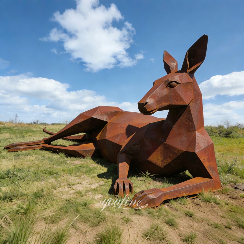 The corten steel kangaroo sculpture features a geometric design that mimics the posture of a real kangaroo, whether it’s grazing, running and jumping, standing and looking into the distance, or leisurely lying down. Each design perfectly captures the essence of the kangaroo.
