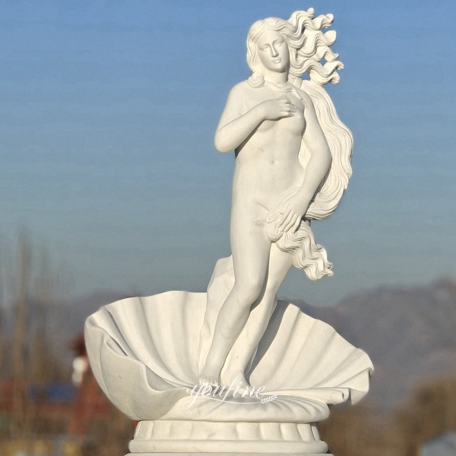 This marble Venus water fountain is inspired by Italian artist Sandro Botticelli’s painting “The Birth of Venus.” YouFine’s artist, deeply fascinated by mythology and well-versed in Venus’s story, meticulously carved vivid details into the marble, capturing Venus’s every expression.