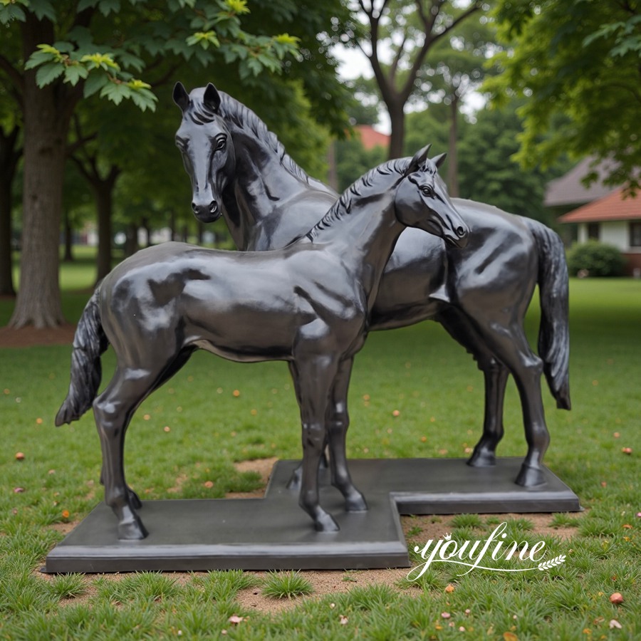 The horses’ shapes and facial details are incredibly lifelike, closely resembling real horses. Notably, the statue’s surface is professionally chemically colored, resulting in a smooth, glossy finish and a truly artistic aesthetic.
