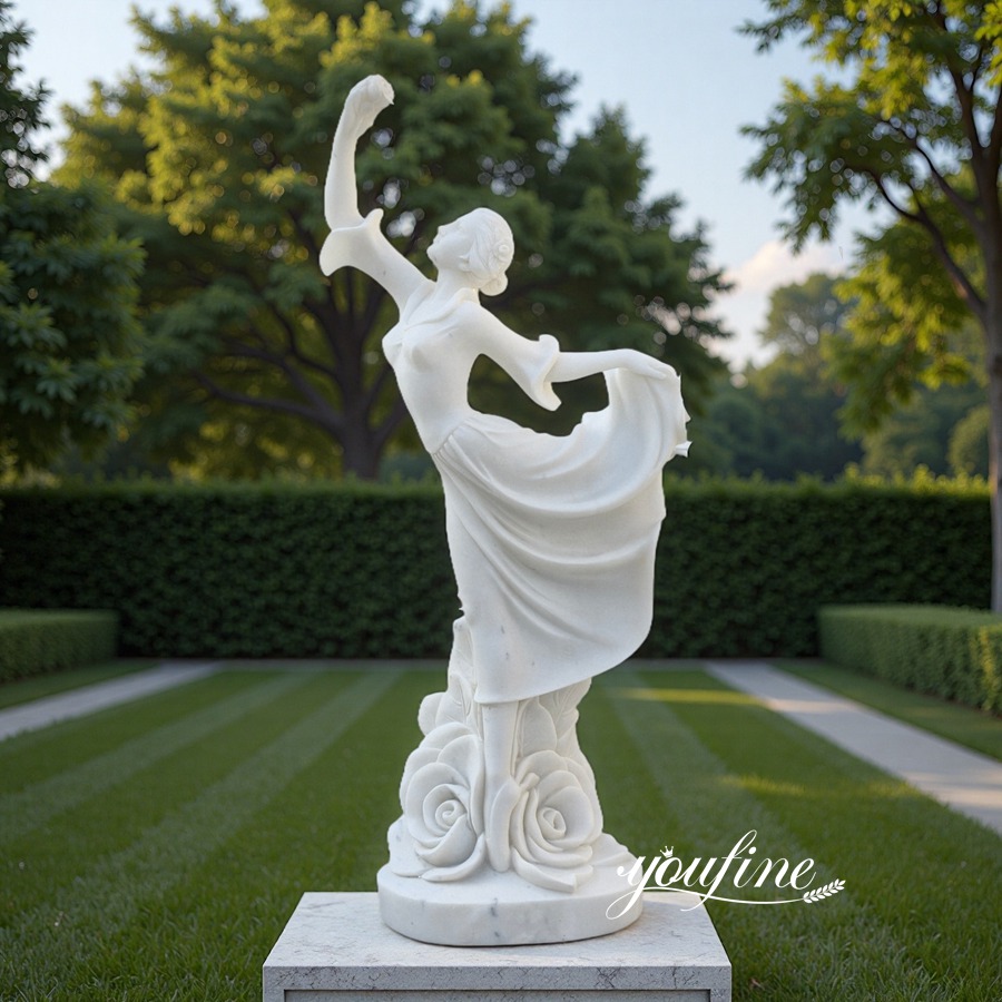 The dancing girl statue exudes youthful vitality and has always been a popular choice for outdoor marble sculptures. We offer a variety of custom designs, including those in long skirts, with faces turned to one side, and dancing with flowers. Of course, if you have a design you like, please contact us for a custom design.