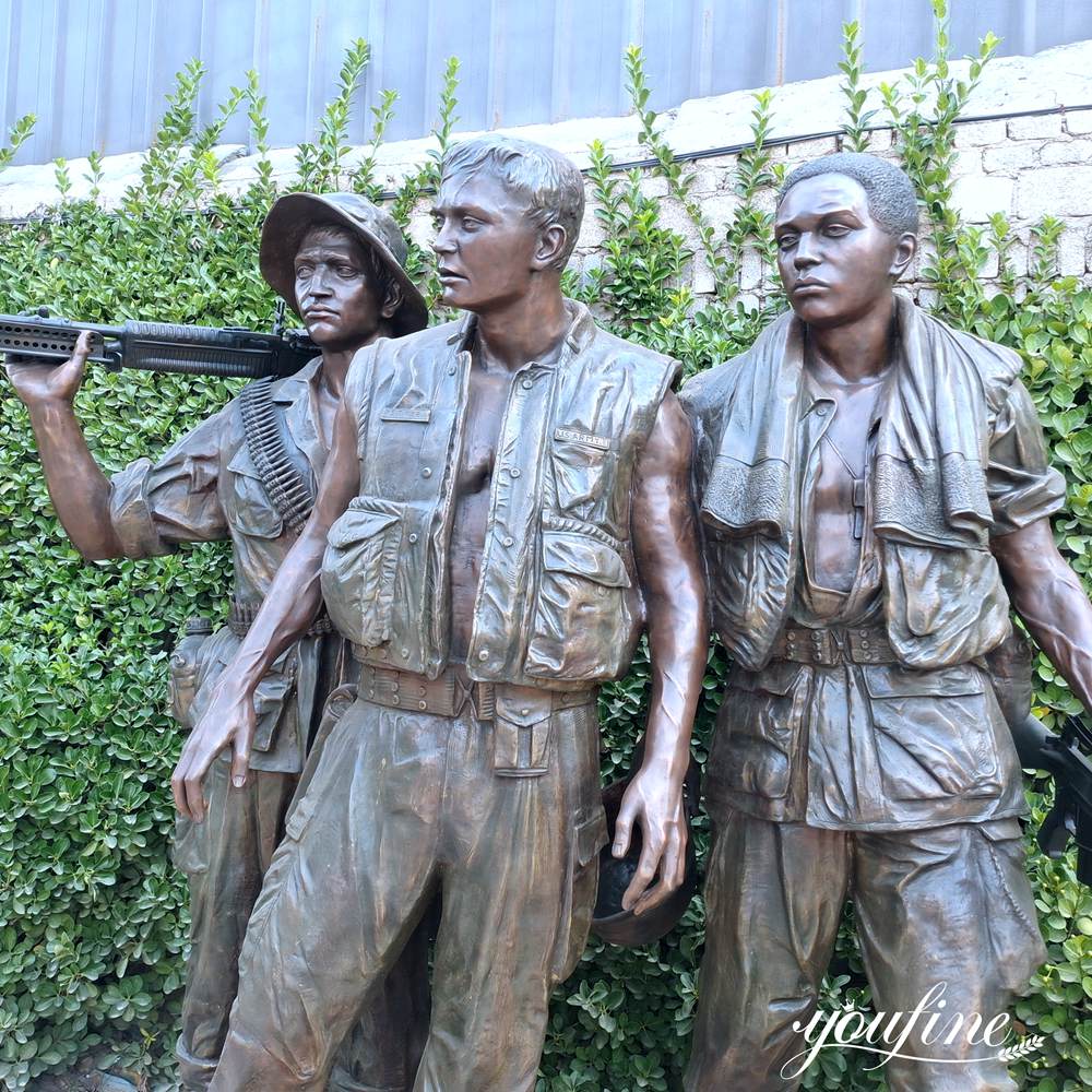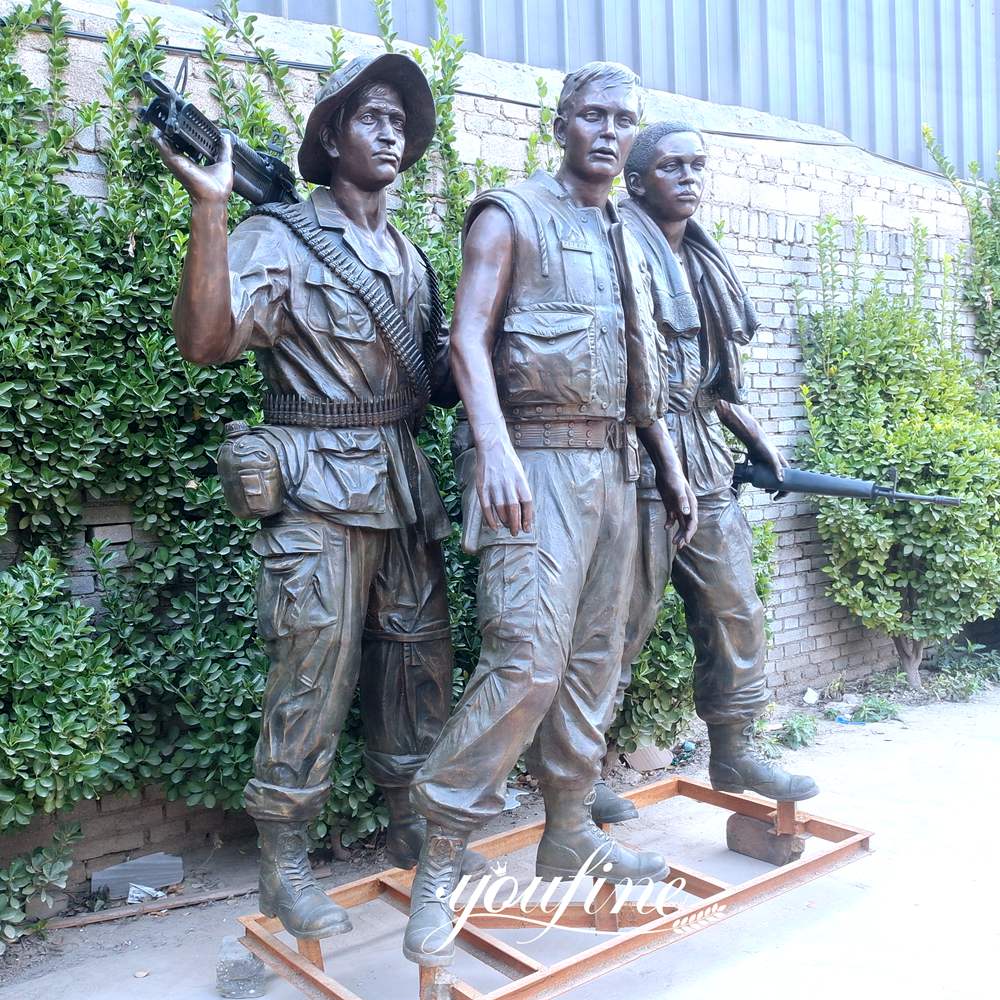 We have been specializing in the casting of bronze military sculptures for more than 40 years and have professional designers and artists teams. The size, and style of this Vietnam Memorial statue replica can be changed according to your needs, or if you have your design, our artists could cast it directly for you and ensure that it is as similar to the design in the biggest degree.