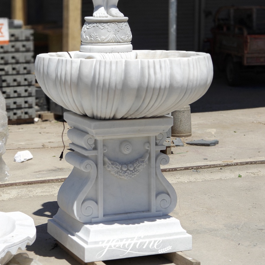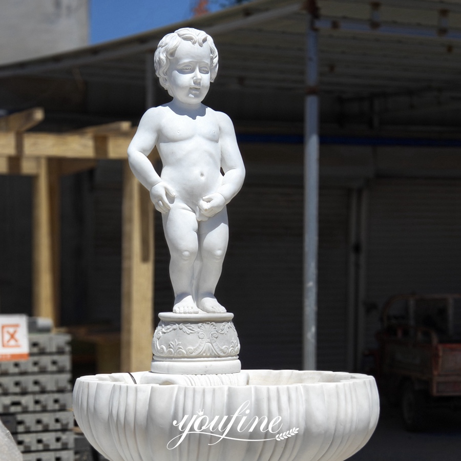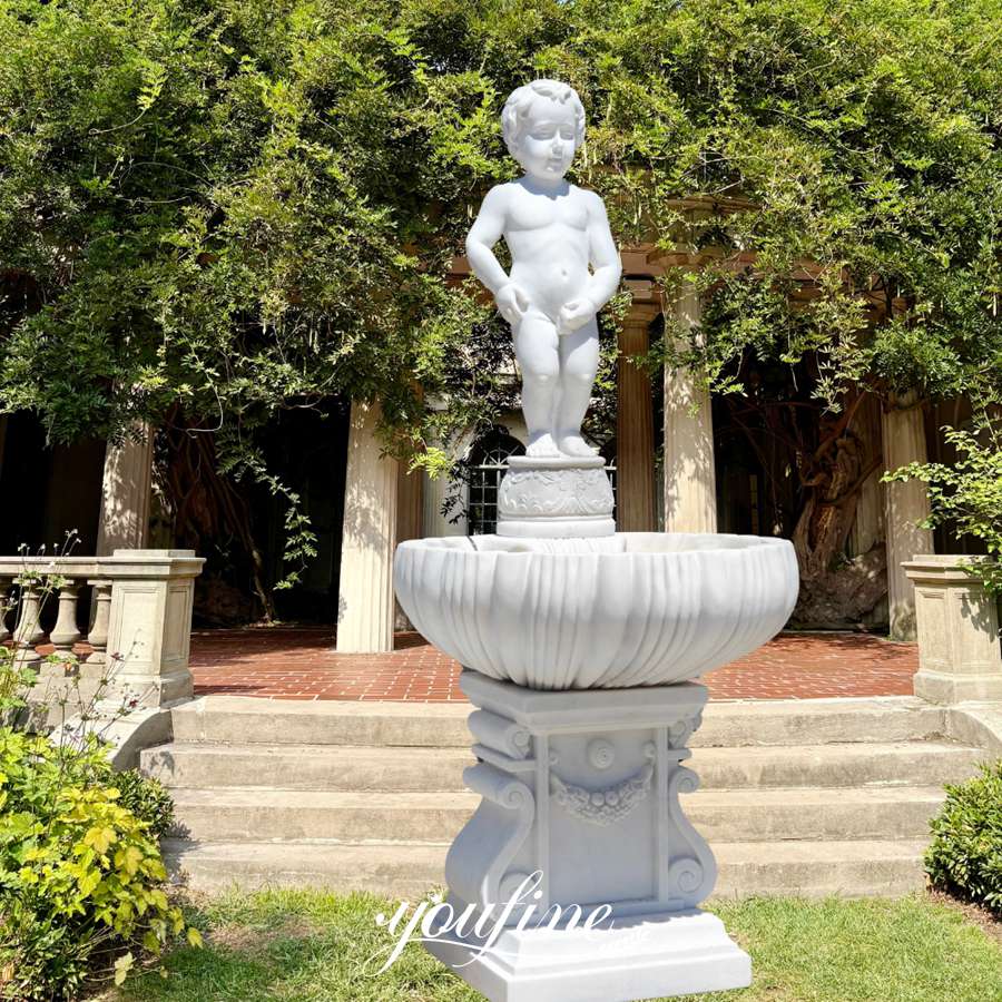 The urinating cherub fountain is carved from carefully selected Grade A Guangxi white marble, which allows for finely detailed sculptures and appears crystal clear in sunlight.