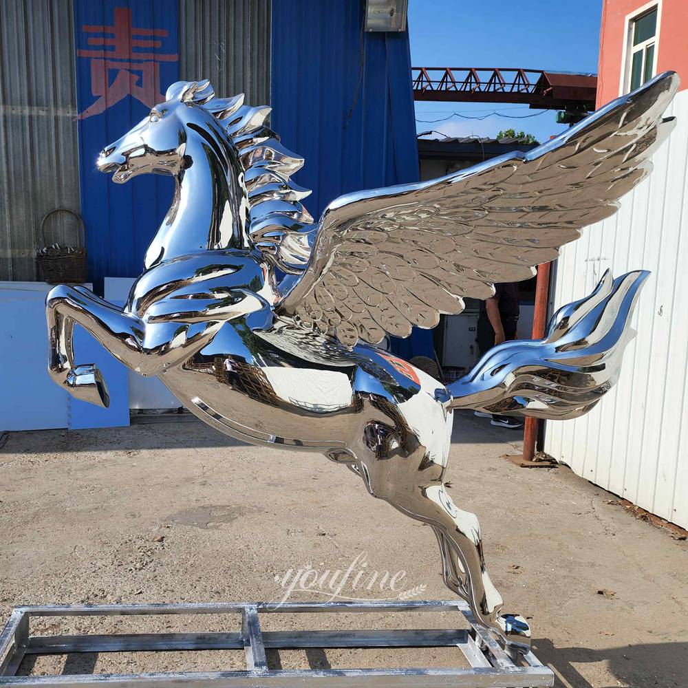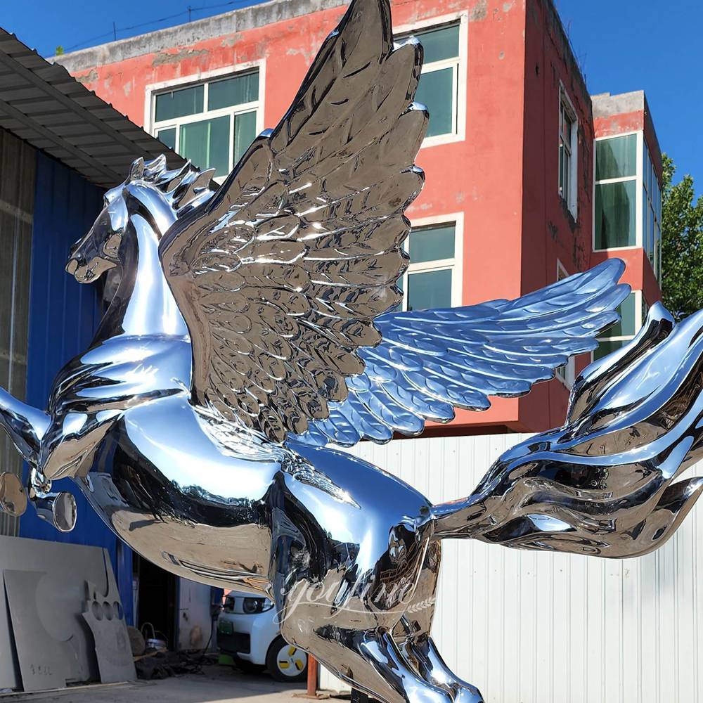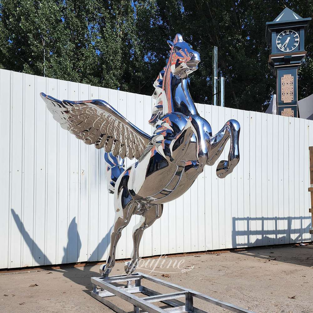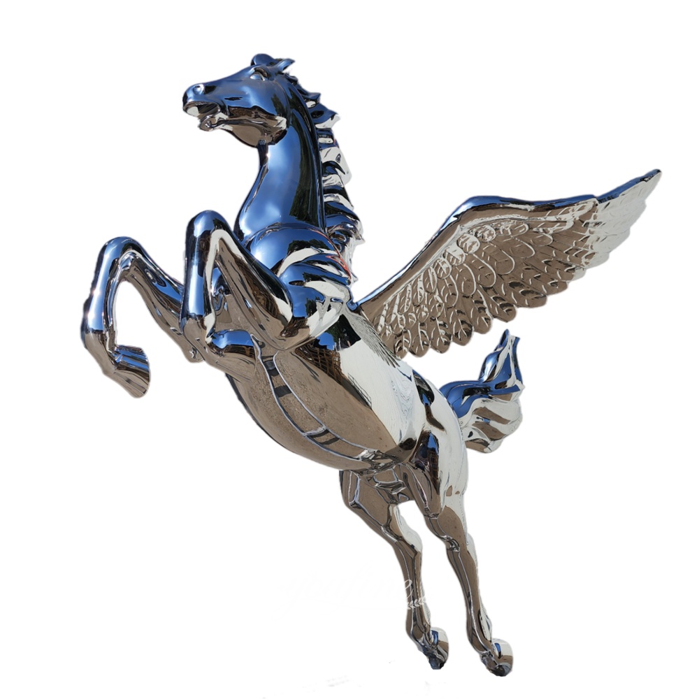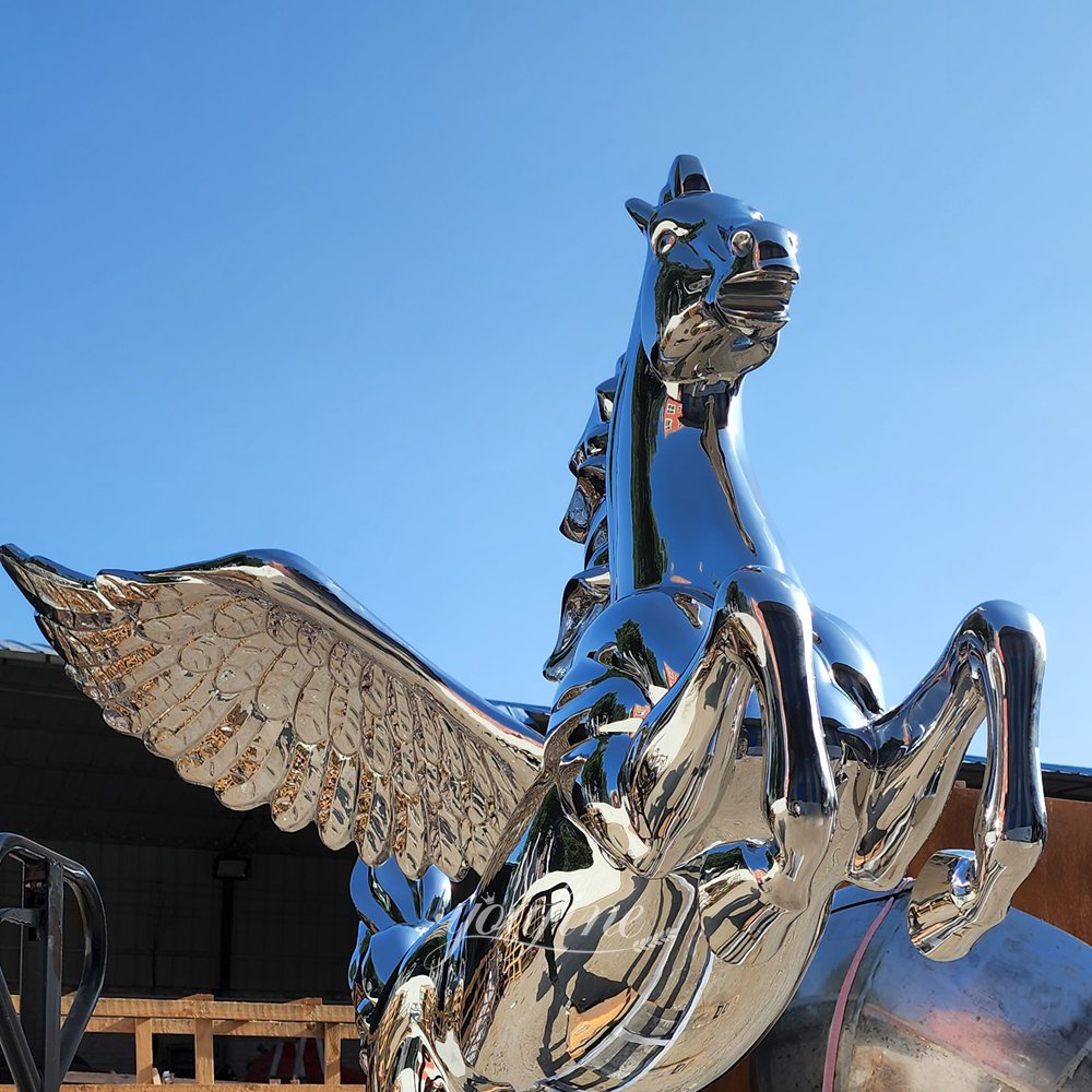Based on high-quality stainless steel, this Pegasus sculpture features a surface treated with an outstanding mirror-polishing technique.
