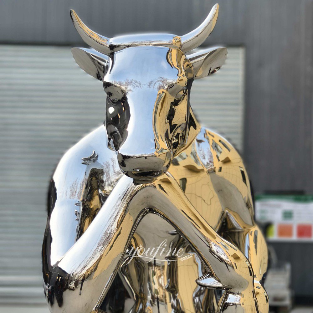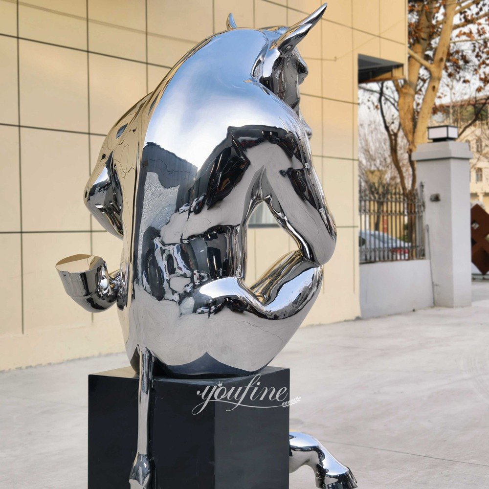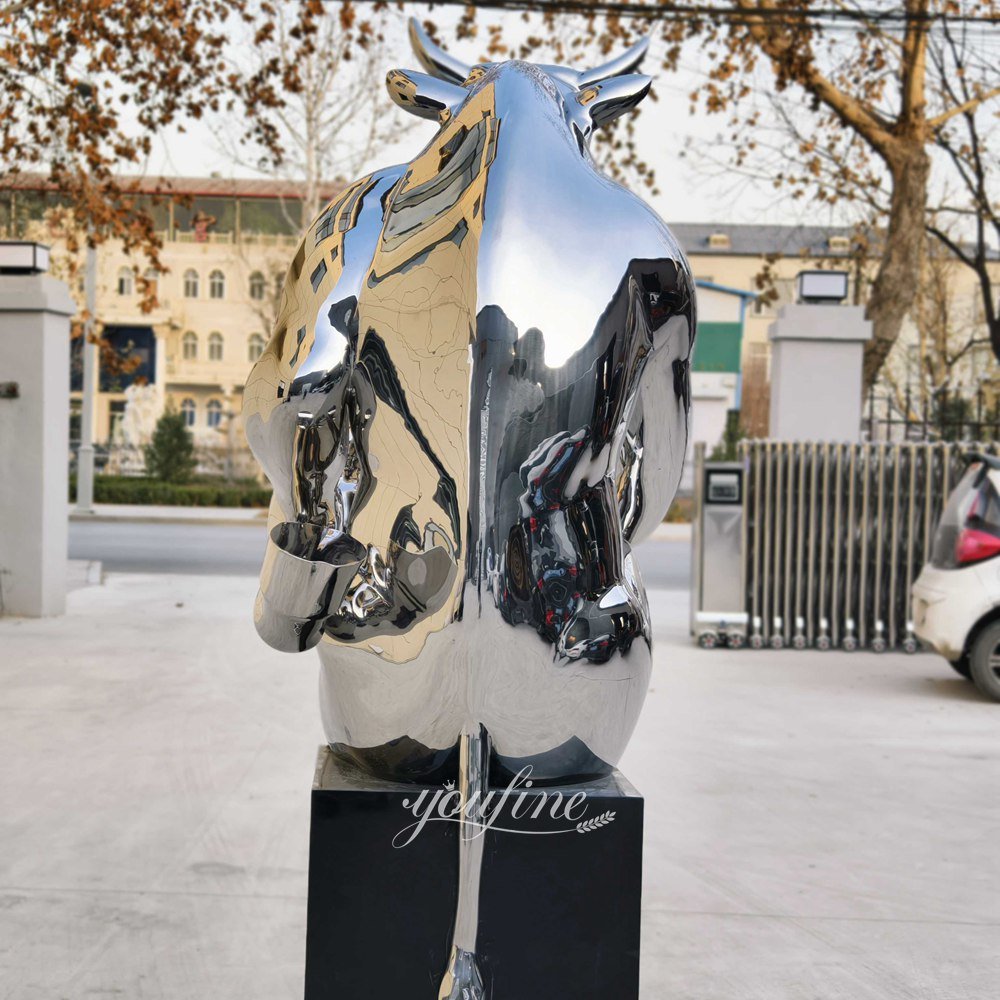 This anthropomorphic design breaks away from the traditional image of bull sculptures as fierce and aggressive. While retaining the bull’s iconic curved horns and rounded nose, it adds a touch of playfulness and humor.